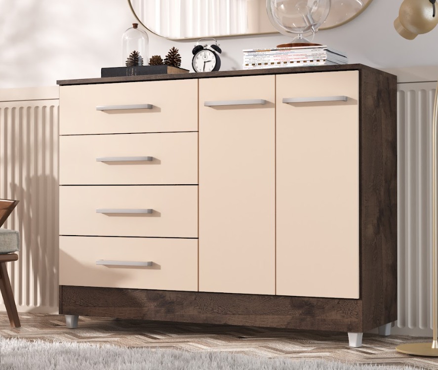 Cômoda 4 gavetas 1 porta - GISELE CHOCOLATE/OFF WHITE