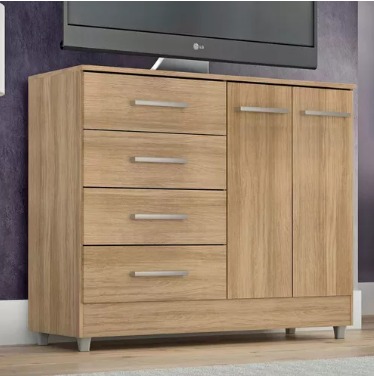CÔMODA GISELE| Com 4 gavetas e 2 portas com 1 prateleira, dispõe de um design sofisticado é própria para pessoas exigentes com organização. As gavetas possuem CORREDIÇAS METÁLICAS, fazendo assim com que a gaveta não caia na hora que você for utilizar, evitando acidentes com crianças. O móvel suporta pesos de até 7kg em suas gavetas e 20kg no tampo suficiente para acomodar televisores, além disso acompanha pezinhos para melhor limpeza e durabilidade do produto. As gavetas são espaçosas e comportam um bom volume de roupas e acessórios em seu interior. Possui acabamento Touch Alto-Relevo ou Alto Brilho UV e Semibrilho parte interna. Tem um design moderno que ao mesmo tempo atende muito bem as reais necessidades de uma ou duas pessoas.