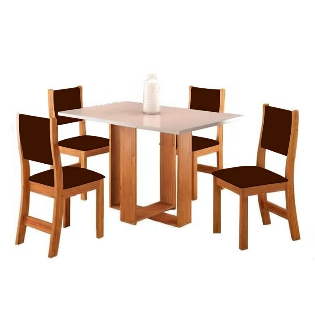 Mesa:Estrutura em MDP 25 mm Cadeiras: MDF 15/18 mm Espuma do assento: D16 Peso suportado: 120 kg Cor cadeiras: Mel marrom