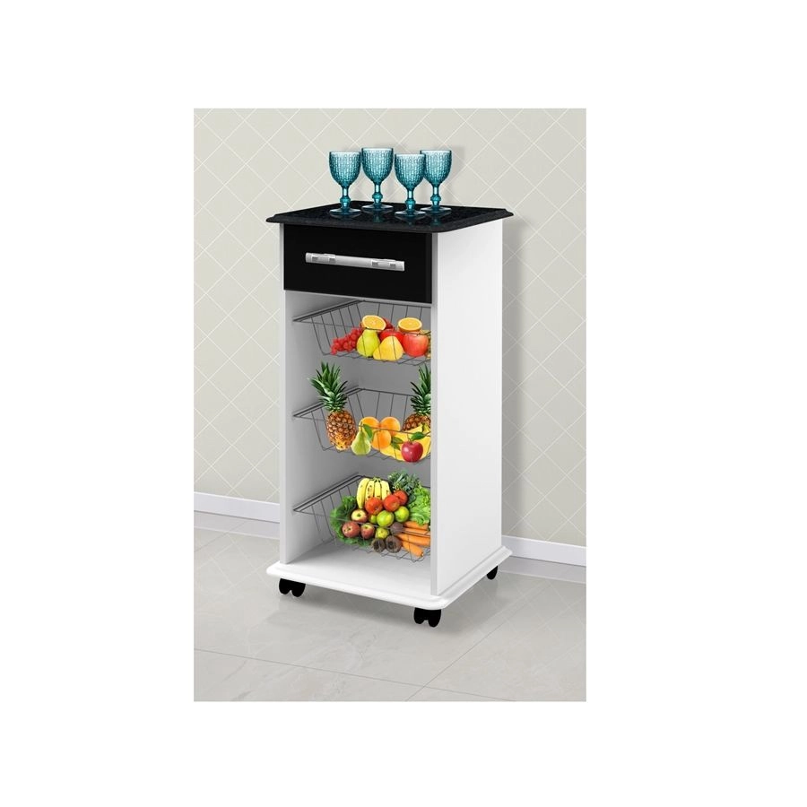 Fruteira Multiuso Grécia Com 3 Cestos 1 Gaveta E Pés Com Rodinhas