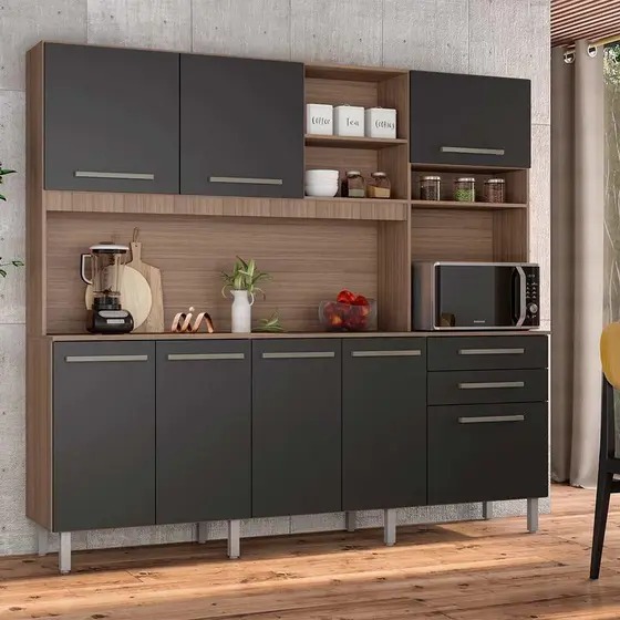 Kit Completo Madeira 2,13 Ibiza Montana Grafite para Cozinha é o móvel completo para sua cozinha.